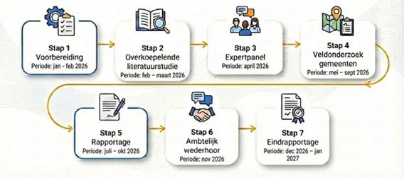 Benieuwd naar de hele onderzoeksuitvraag zoals wij die met onderzoeksbureaus gedeeld hebben? Die kun je hier lezen. De planning voor het onderzoek heeft onderzoeksbureau BMC uitgewerkt in hun Plan van Aanpak. Afronding is in 2026.