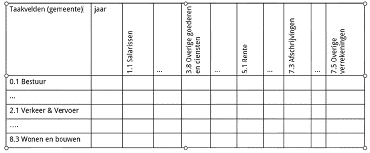 Onder de kostensoorten kunnen we inzicht geven in de feitelijke afschrijvingen van in gebruik genomen investeringen. Zitten daar meevallers in, dan is dat een indicatie voor langzamer in gebruik nemen van investeringen. Afschrijvingen zijn onderdeel van de lasten bij de verschillende taakvelden. De investeringen zelf blijven volledig buiten beschouwing omdat die niet via de rekening van baten en lasten worden verantwoord. (Rekenkamers kunnen zelf aan de slag met aanvullend onderzoek.) Dat wil niet zeggen dat er in de begroting en rekening geen voornemens en verantwoording over investeringen kunnen staan, maar boekhoudkundig gezien staat een investering (als vast actief of onderhanden werk) op de balans.